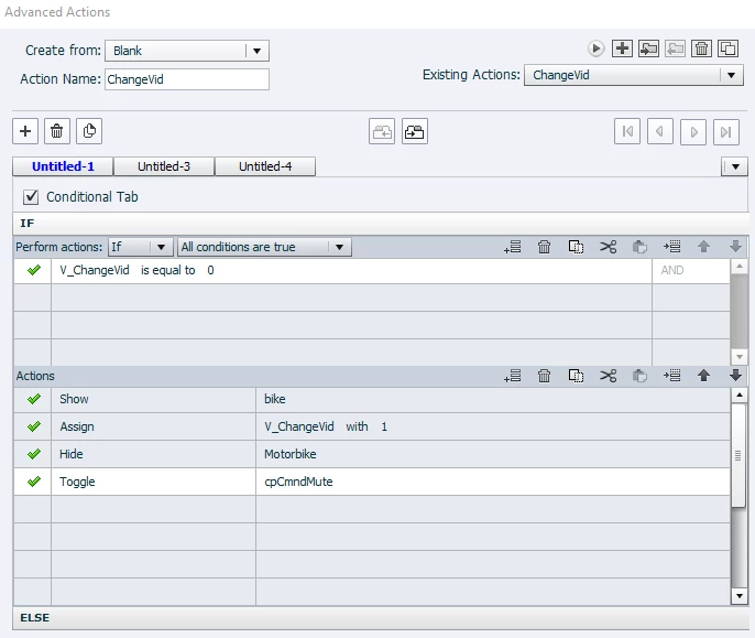 But im struggeling to find this in the action. I would like that when the variable are 1 the video showing will play and the other be mutet. The vimeo are in webobjects