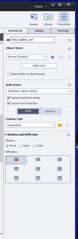 Hi to all my properties panel does no display entirely the "Style" content !! it only displays "Shadows and reflection"