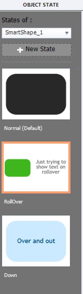 When adding an additional Rollover Object on top of the Button; the two actions, Button and Rollover Object, will only work independently on playback regardless of their arrangements on the timeline.