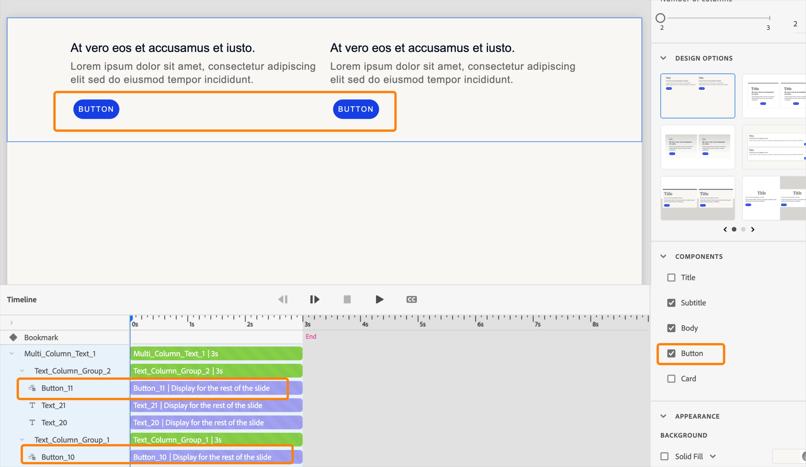 I'm playing with the new Captivate. How do you delete items, buttons, for example, from either the timeline of the slide itself?