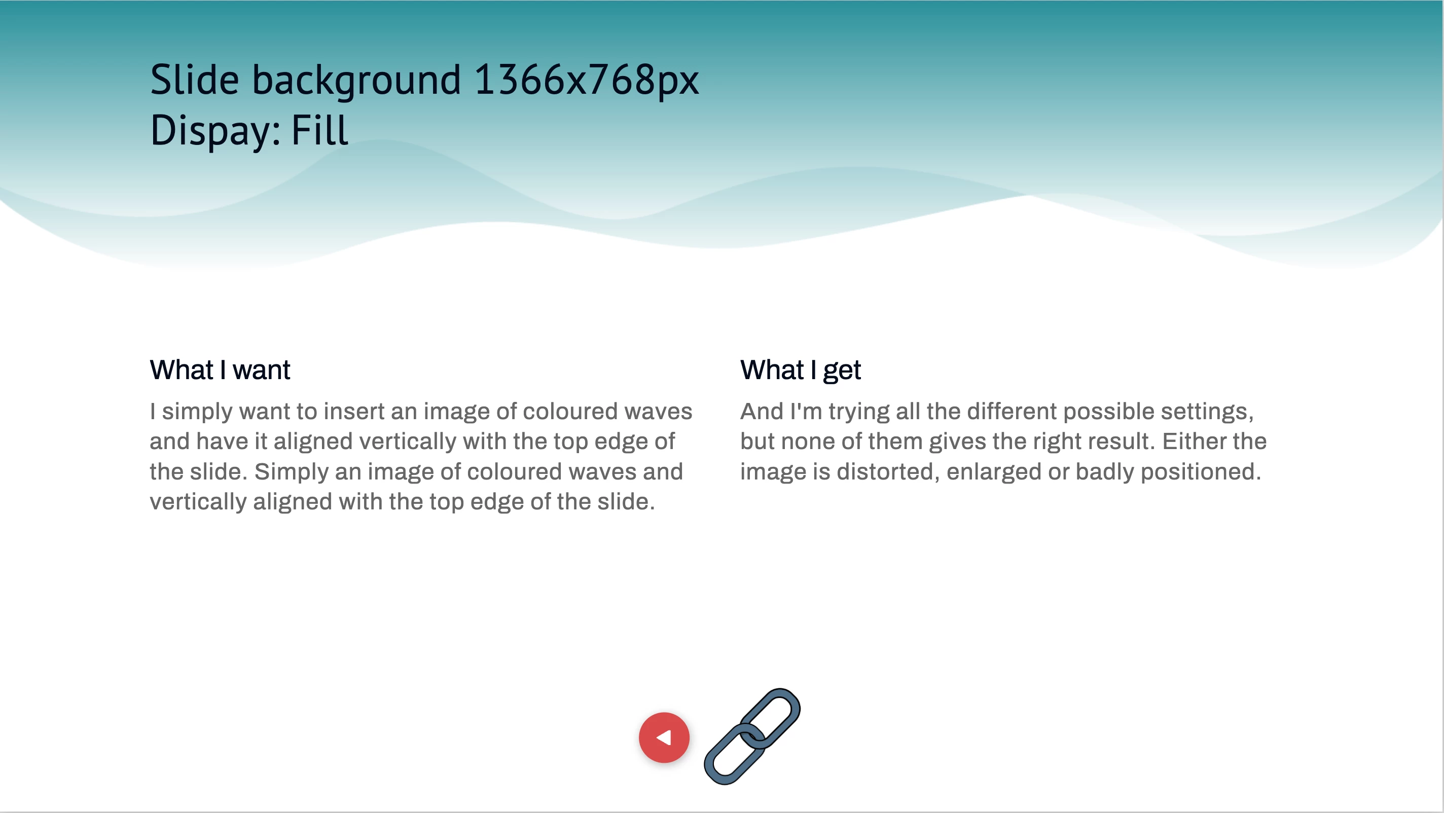 I simply want to insert an image of coloured waves and have this image aligned vertically with the top edge of the slide.