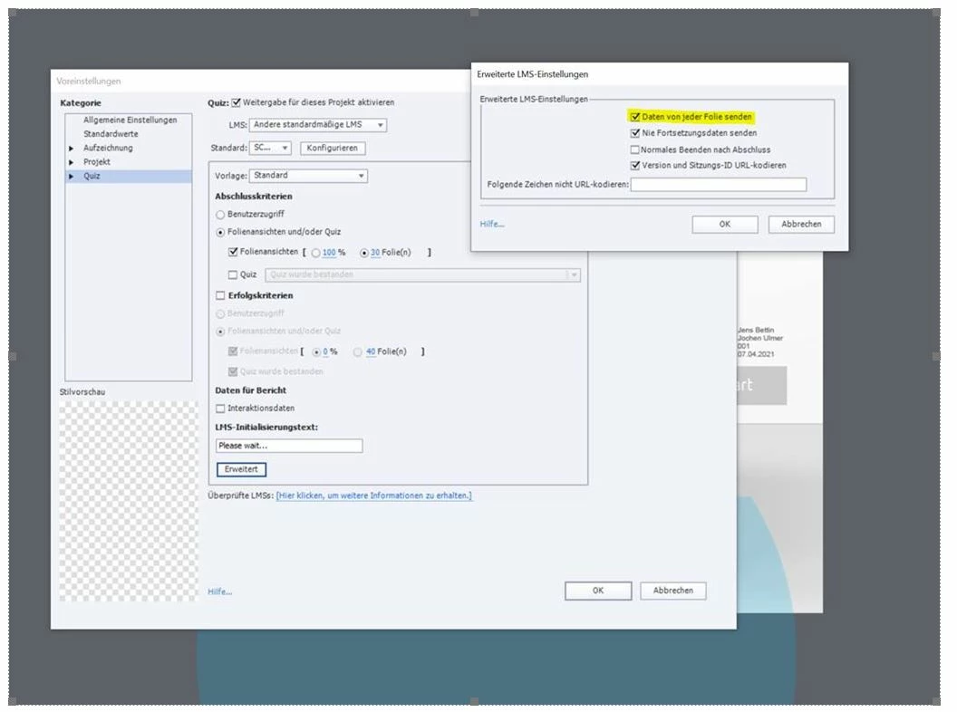 I am using Adobe Capticate 2019 11.5.553 to create a learning module. The module is published as an HTML5 file. As settings I use the SCORM 2004 3rd edition.