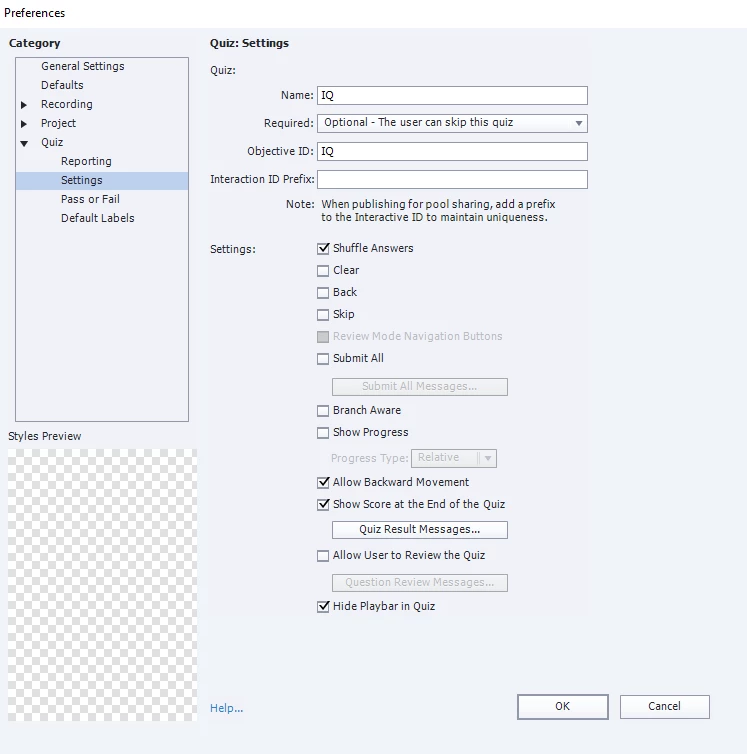 I'm creating a captivate package. Within the package all seems to track correctly. When I export it as a SCORM I seem to have tracking issues within the LMS. I thought the LMS was the issue but if I alter settings in the main project it does affect the tracking. Any advice? Screenshots of my quiz settings attached