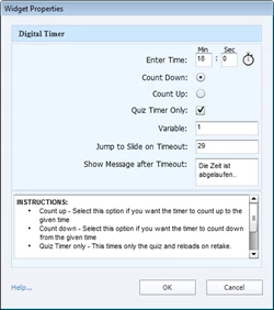 I have some question slides in my project and want to set a timer for the quiz. I already insert the widget and did the following settings: