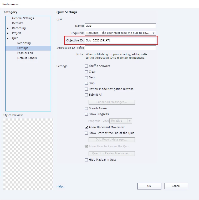 That's working as it should within one course, but not in the other. And I noticed that both courses have the same exact Objective ID in the Quiz settings. Is that an issue at all? Can it be changed?