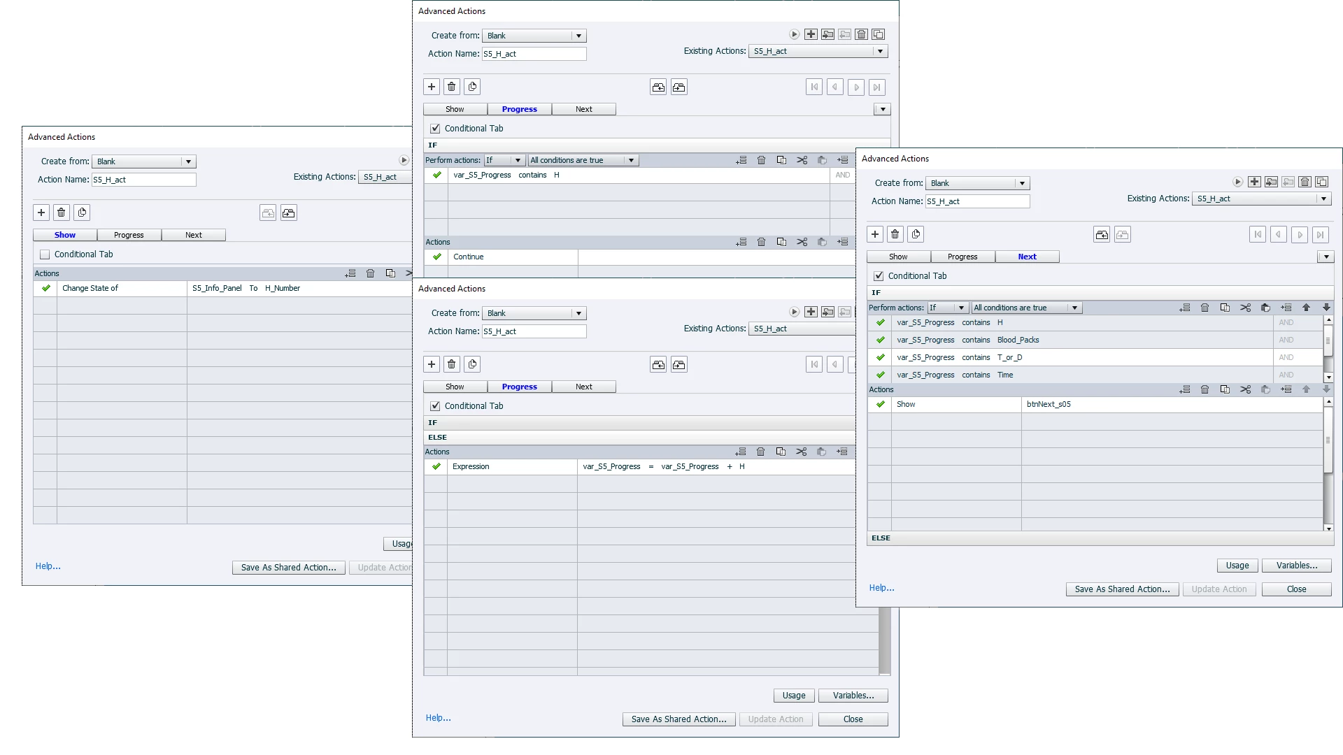 On the fifth slide of my project I have seven buttons to press before the 'next button appears. The first timne I hit the next button; the screen flashes white and the slide refreshes. If I try clicking the buttons a second time; I get to the fifth or sixth button and the screen flashes white and the slide resets again.