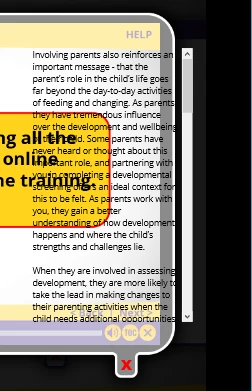 I had always assumed that a user would hide the transcript before opening the glossary or other objects that display across an entire project. A recent test of a nearly finished training resulted in someone having a transcript open first and then showed the help system. Since I publish to HTML5, the text area widget gets placed above everything else which results in the following appearance in the training for when the help system is displayed.