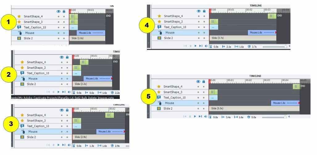 SITUATION: My Captivate file has a slide that has a mouse movement and several smartshapes on it. In the timeline, I select the mouse bar and move it to the right. When the left end of the mouse bar passes the right end of the first smartshape bar, the smartshape bar moves with the mouse bar at a rate that is about two times the speed that I'm moving the mouse bar. The smartshape bar continues to move at this rate until its right end is aligned with the right end of the mouse bar. At which point it moves in sync with the mouse bar. When moving the mouse bar to the left, the same ratio of movement occurs, except that the smartshape bar moves past the left end of the mouse bar until it touches the beginning of the timeline.