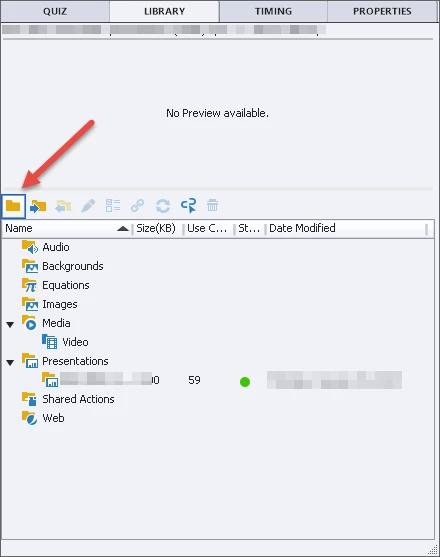 That is one of the few buttons in the Library I will never use. To open the library of another project, I always use File, Import, External Library. The button you are talking about will show ia dropdown list with already once opened libraries.