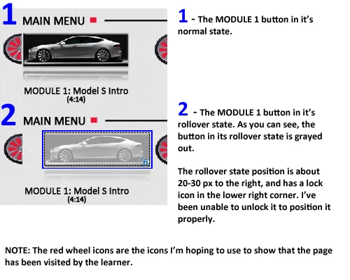 I'm also trying to unlock a button which looks fine in its normal default state, but when clicked, is locked into a position about 50 pixels to the right. There's a lock button on this state and I'm unable to remove it.