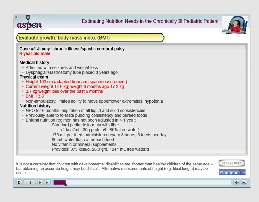The content is medical. A patients history is present on one screen. Subsequent screens walks the learner through findings revealed through the examination. Each screen has a "Review Case" button that when the learner mouses over, the patient history pops up.