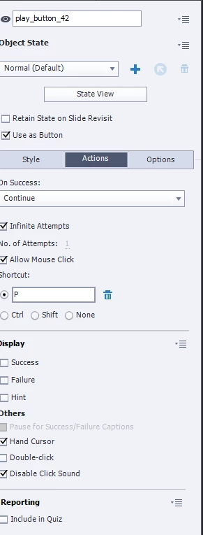 I don't understand your last question. If this is about the Play button, it has Infinite attempts which means that it doesn't have a Last Attempt event which could trigger an (advanced/shared) action when attempts for failure are exhausted.