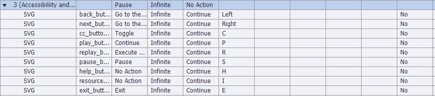 Where are the interactions you were talking about? I don't see any interaction, you have only some common navigation buttons, a Play button, a Pause button and a Replay button. The last is the only one triggering an advanced action (not an interaction, try using correct terminology). I can suspect what that action is, probably as described in my blog post: