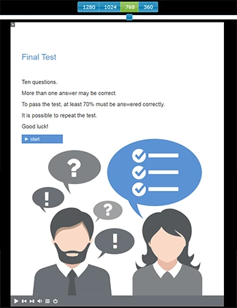 I´m using Captivate 2017, but working with an "old" file made in Captivate 9. So I do not use fluid boxes, but breakpoints. The script assumes that all major buttons wil be shown on a mobile device: