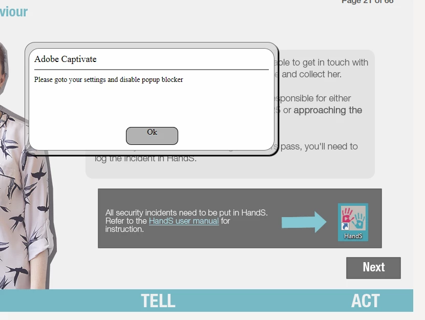 For some reason the below error continues to appear when I open up hyperlinks within my eLearning project on my LMS. I have recently updated to Adobe Captivate 17. I'm guessing that this update is what has caused the popups to start appearing.