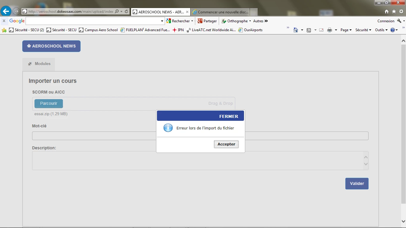 After published a PPTX, I can't import it in LMS Dokeos, I have a message Error at the end.