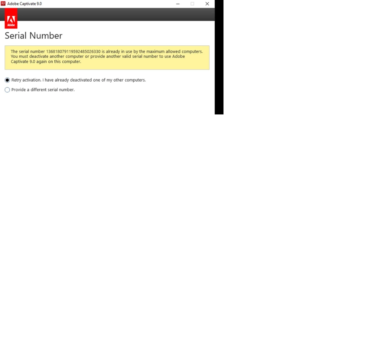 Hello, we have a license of Adobe Captivate, serial number