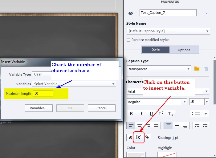 You are probably on an old version of Captivate, right? The default length of a variable, when inserted was 15 characters up to version 6. Now it is 50, but you can change it when you insert the variable using the X button. Do not type a variable just in the text, but always insert it with that X-button to avoid typos.
