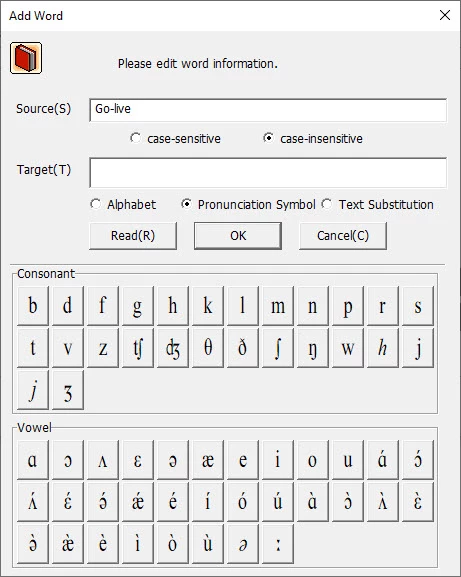 Pronunciation Symbol to add Go-Live to a TTS dictionary