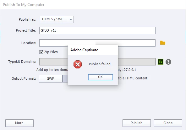 Publish Failed issue on Captivate 2019