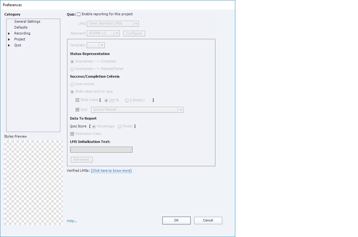 Captivate freezes when 'Enable reporting for this project' is checked.