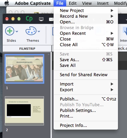 Why is the 'publish to YouTube' link not available to me in Captivate File?