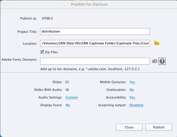 Publishing Captivate 11.5.5.678 version for Devices