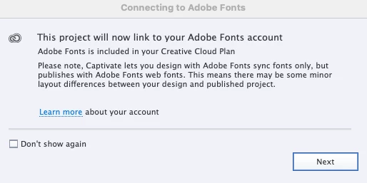 I now have to link this to my Adobe Fonts account. I have tried every way I know, read various articles, added fonts to my Font account, but I still do not see them in my Captivate program. Here are the screen shots and the places that I have researched. I am at a complete loss as to where to go next. TIA.