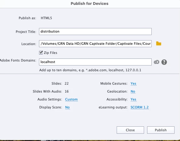 Publishing for Devices for Captivate