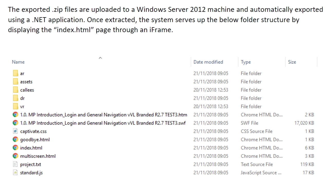 I produce CBT content (a mixture or Captivate v9.0 recordings and imported PowerPoint) and send that to a third party to publish via a web server.