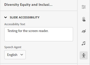 What is the purpose of the Accessibility Text feature? I'm trying to find what it actually does, or how the screen readers find this accessibility text. Currently, the screen readers just read the slide content.