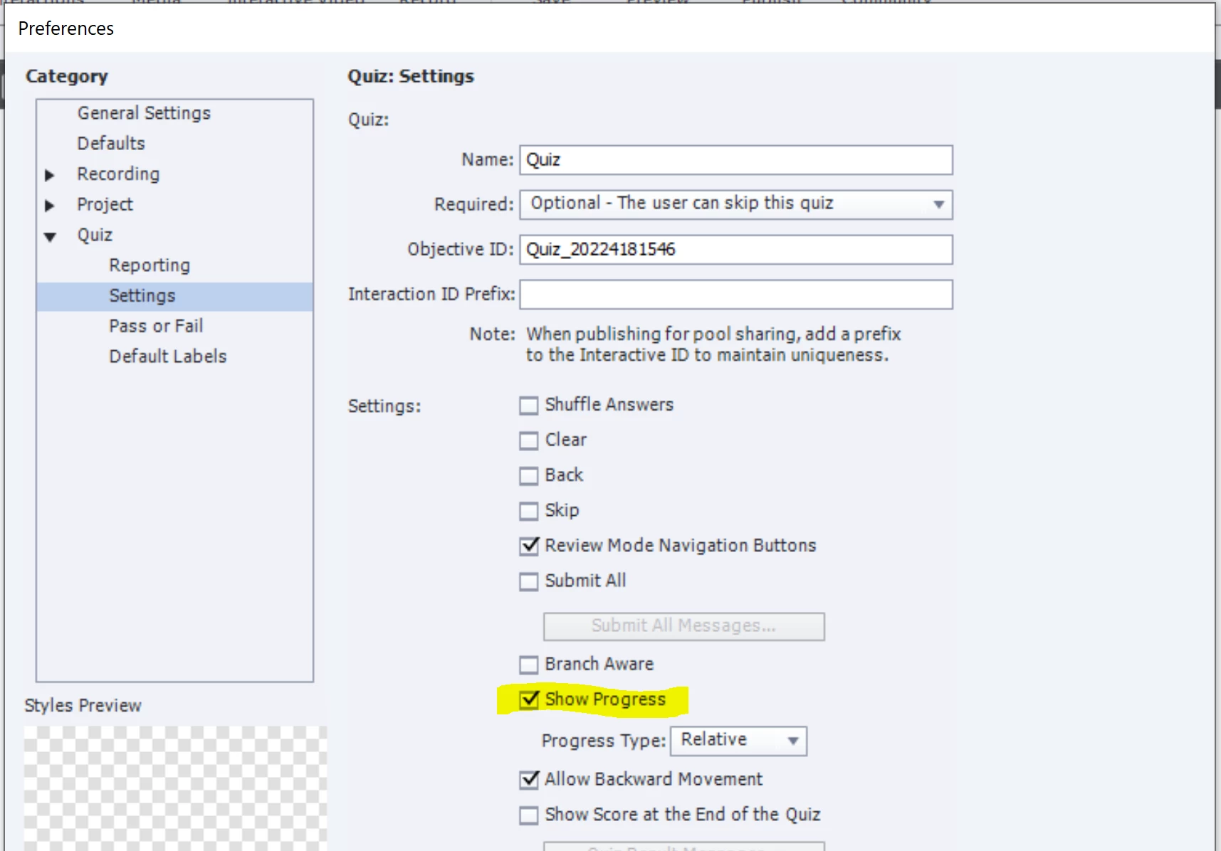 For my 10 quiz questions that I created on Adobe Captivate, the "Question 1 of 10" and so on are not appearing when I preview it on HTML5 in Browser. It disappears. Is there a way to enable this?