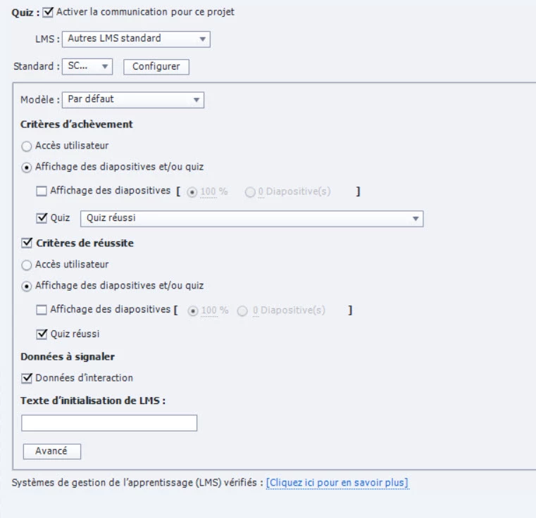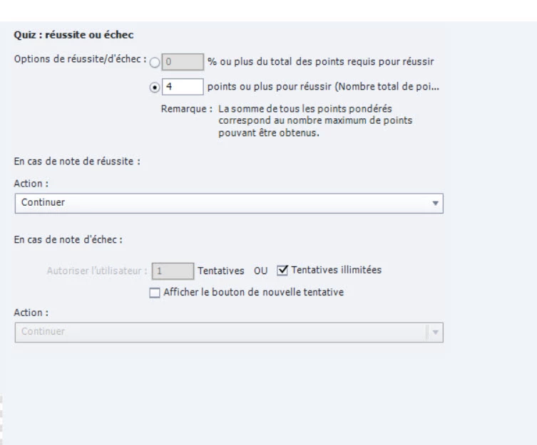 Once in the LMS, if I have at least 4 good question, the information send is "Completed".