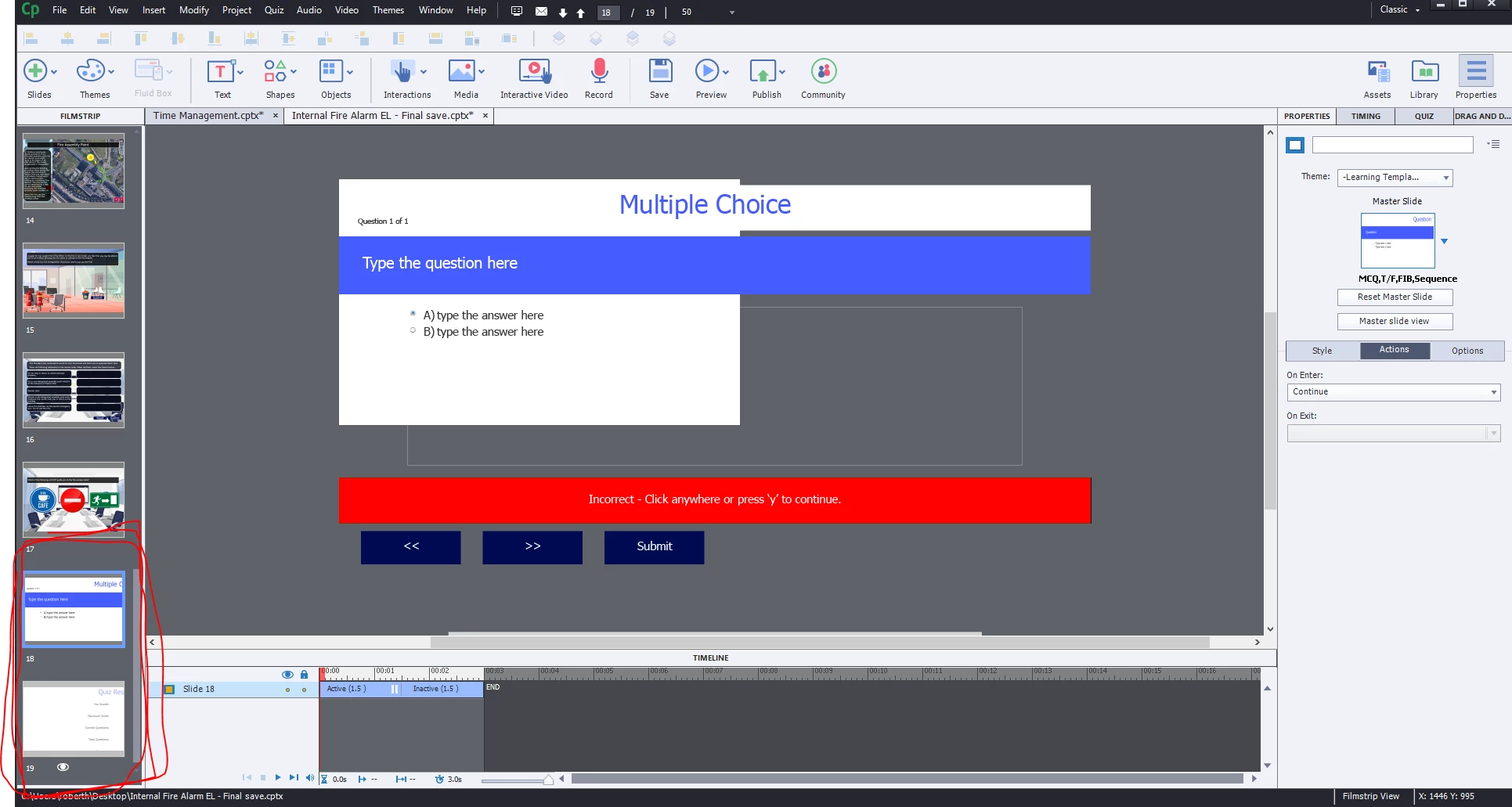 project is 1024x627 throughout - but as you can see, the question slide is all messed up... that goes for the summary page too which you might be able to see in the timeline.