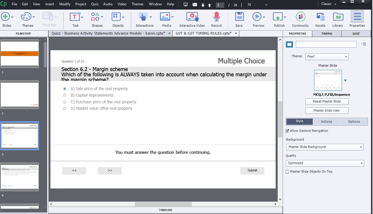 I'm having trouble with quiz answers in Captivate 2019. I have set the correct answer by clicking the corresponding choice when designing the quiz. However, I do the quiz it tells me that the answer selected is incorrect - even though I have selected the correct answer. Any ideas on what is wrong? I have tried creating a new quiz but the same issue.