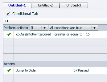 I use the variable cpQuizInfoPointsscored to decide whether my slide moves to the "Fail" slide or the "Pass" slide.