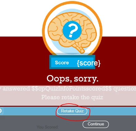 The first attempt, the variable works fine. However, I noticed that even after clicking the retake button, cpQuizInfoPointsscored retains the points of first quiz attempt.