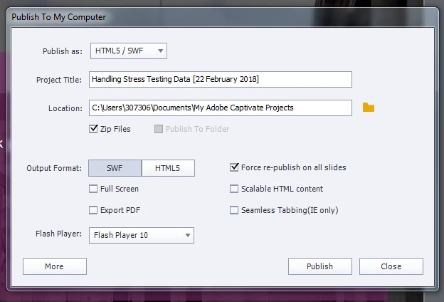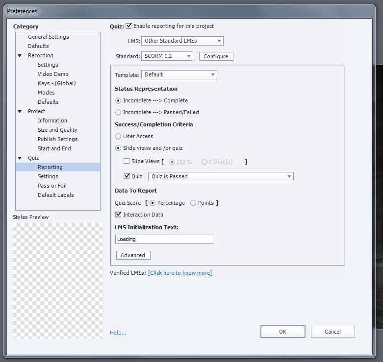 Additionally when publishing into SCORM 1.2 zip file, it buffers and stops at 25% when loading?