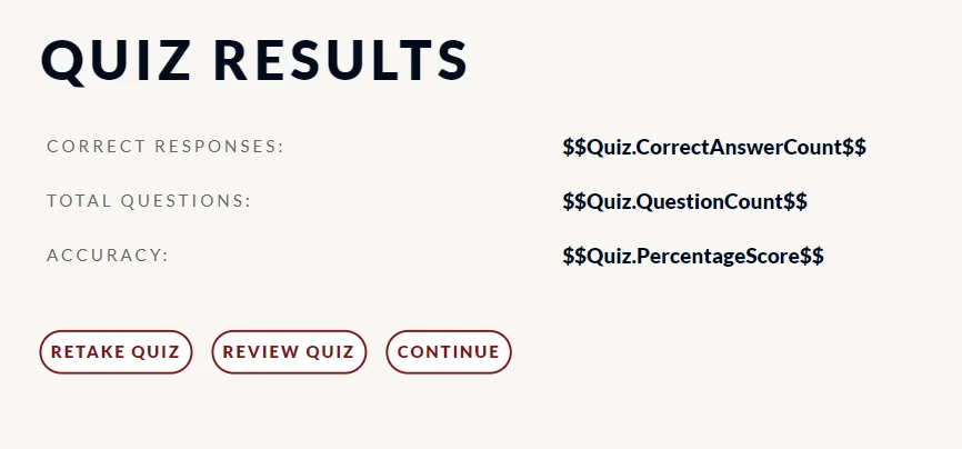 Quiz Results - Continue button - error