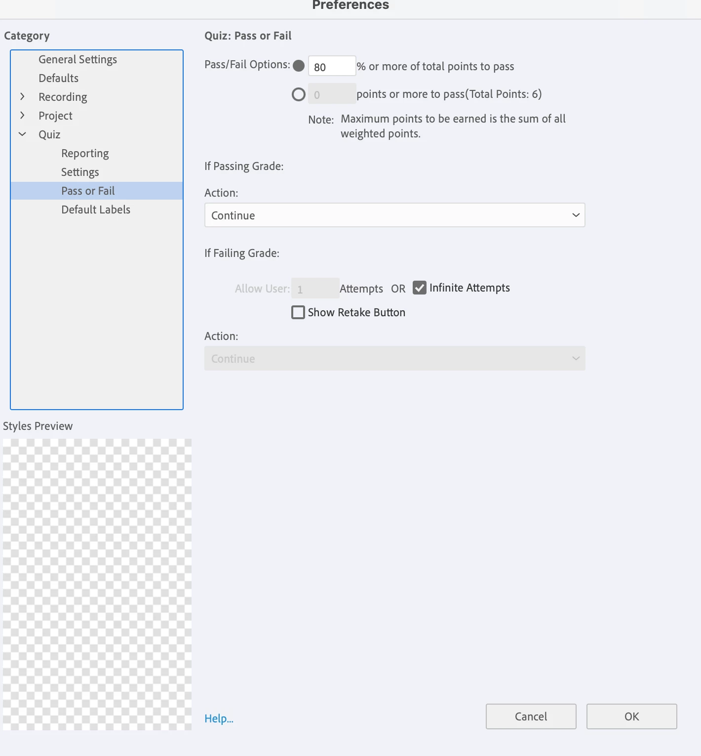 It could be the way our module is set up: several slides, a quick check with two questions, more content, a final check with 5 more questions. There were quiz questions answered in the previous setting, and a few more AFTER resuming but the quiz results slide shows only the questions answered AFTER resuming, and discounts the ones answered before. For example there are two questions in the beginning I answered correctly, then paused, then resumed, and answered the last four questions correctly. The passing criteria is set up as 5/6 is passing. The results show a failure of 4/6 because the first two questions are not counted.