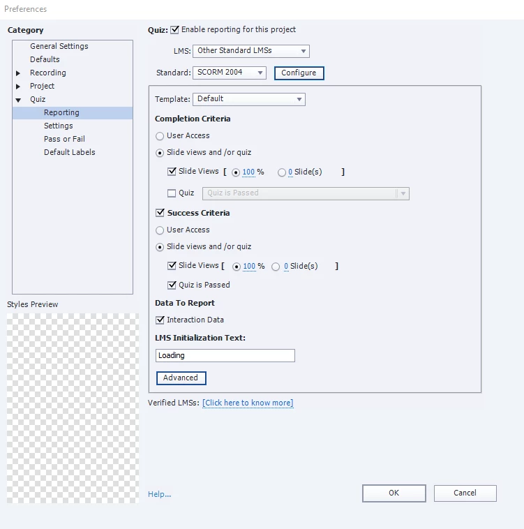 I have a Captivate 9 presentation that has a quiz. Here are the specs: