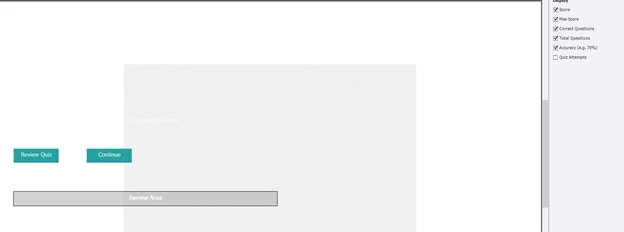 2. I tried to just go to edit my quiz settings to "show score" and I check all of the things I want it to show but the slide that populates is blank. I have tried to see if it was just white words but that didn't work. Picture also attached.