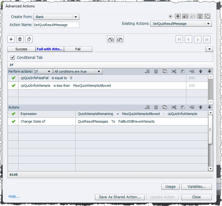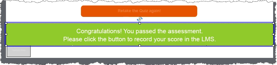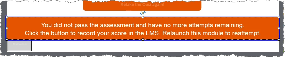 At the moment I have a 'retake quiz' button that takes the user back to the begining of the quiz slides to retry. I tried using a similar advanced action to that but that hasn't worked. I'm not very good with the coding of it all, just want I've found works by researching.