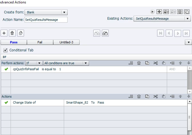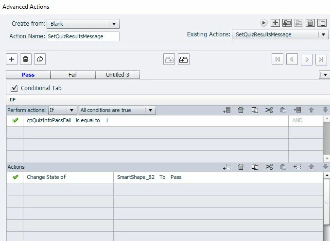 I was wondering if there was a way I can create two texts boxes and/or buttons that will show on the slide when they have either failed or passed. An advanced action? Java Script?