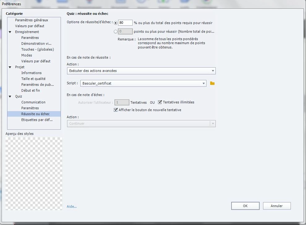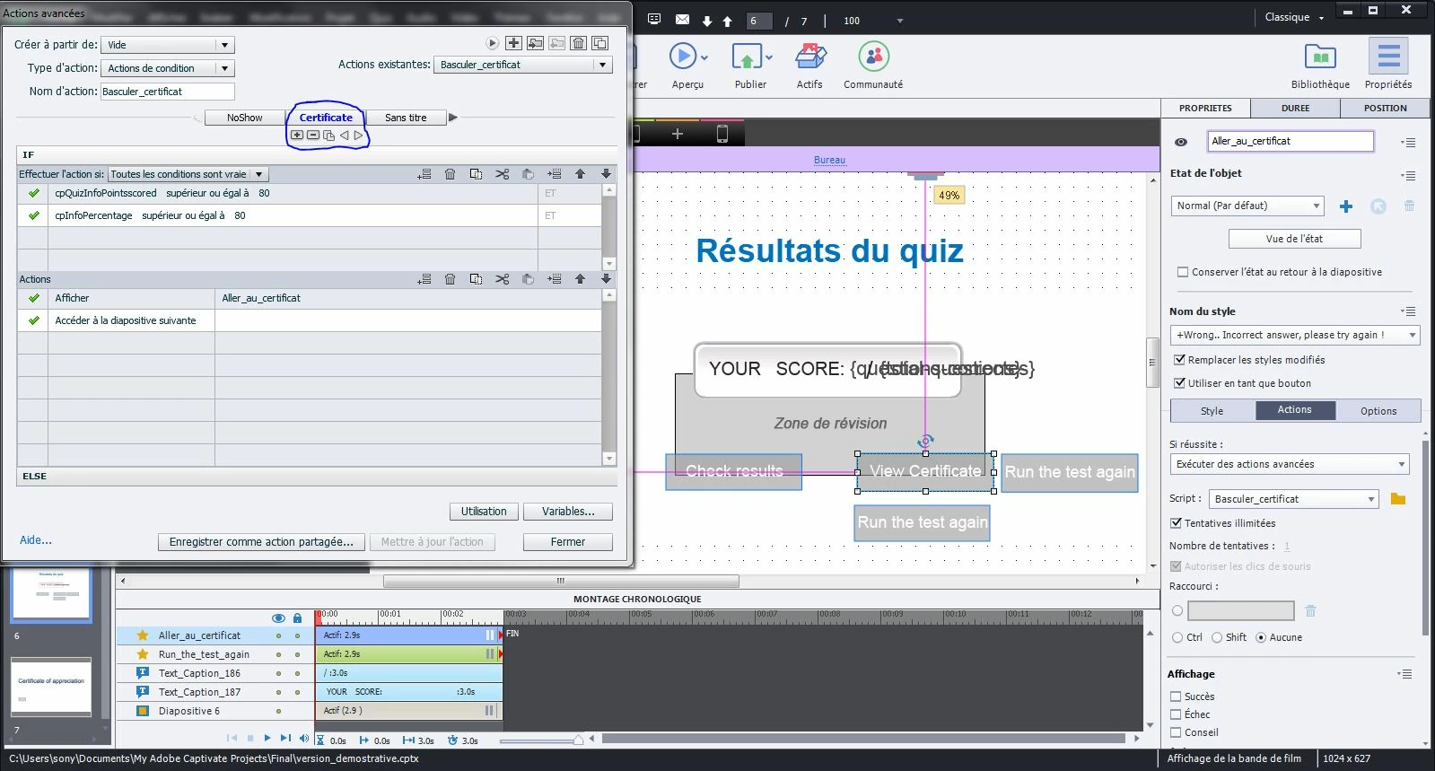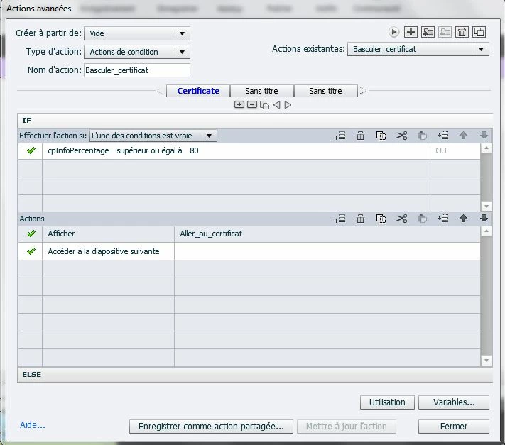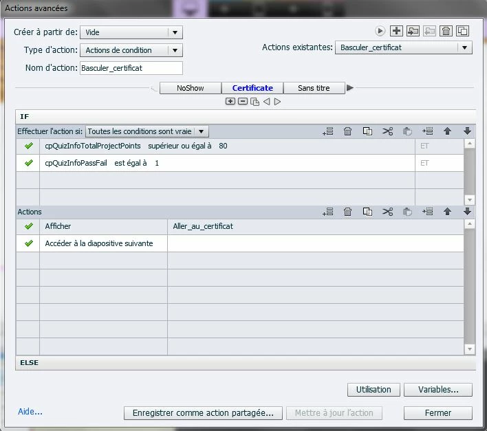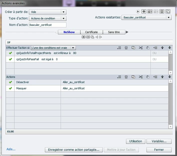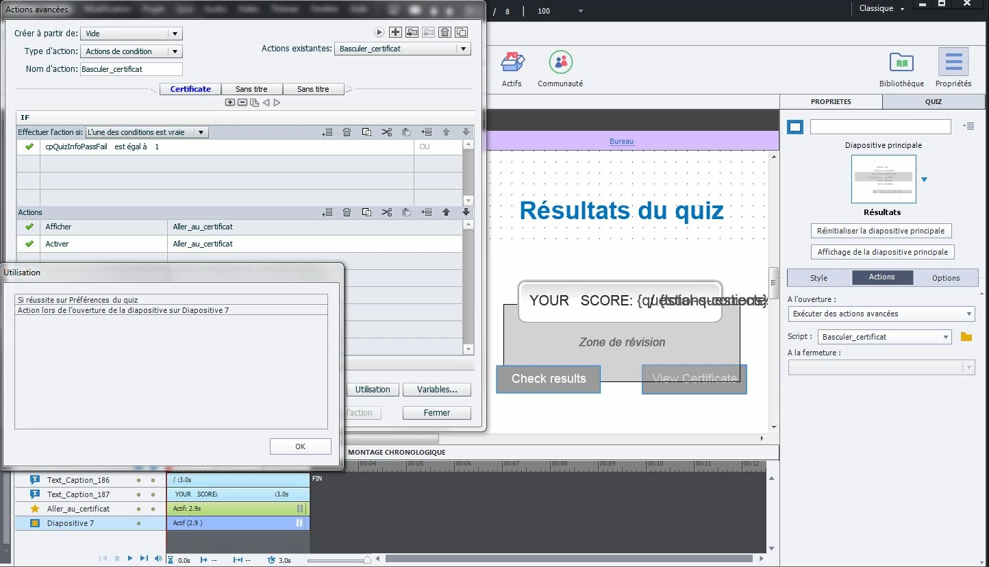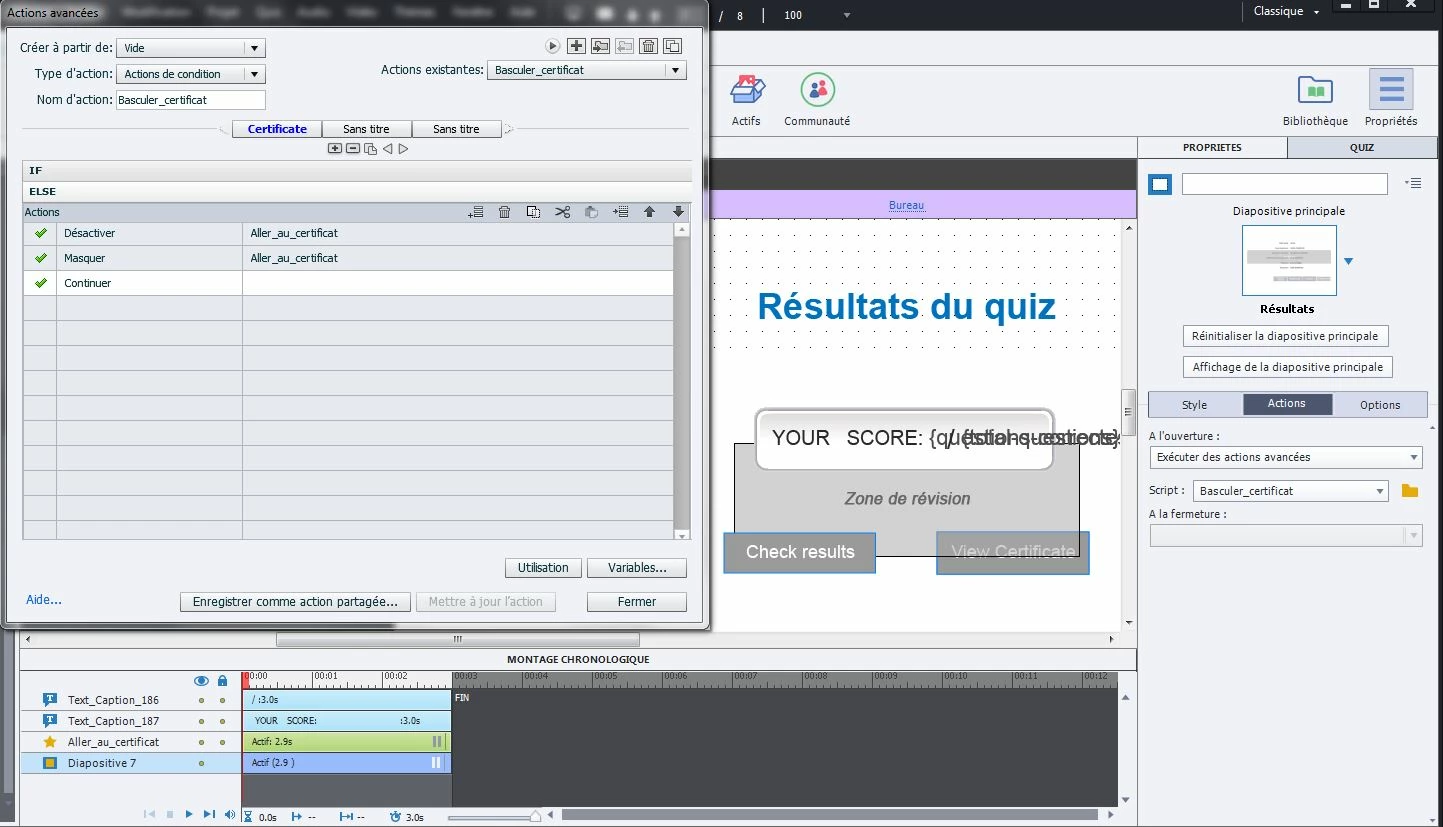 Autrement voici le nouveau IF de l'action appliqué à les préférences du quiz et à la dia des résultats:
