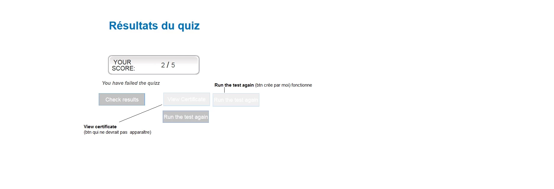 Je ai été obligé à utiliser un nouveau bouton car autrement je reste sans bouton pour refaire le test après le premier tour de Check results.