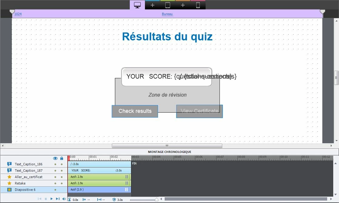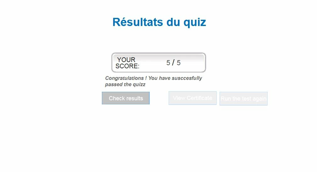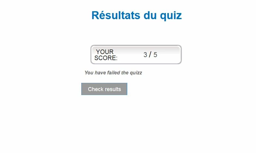 Voici la page de résultat du quiz qui reste, après avoir cliqué sur le bouton Check results et avoir visionné toutes les questions du quiz..