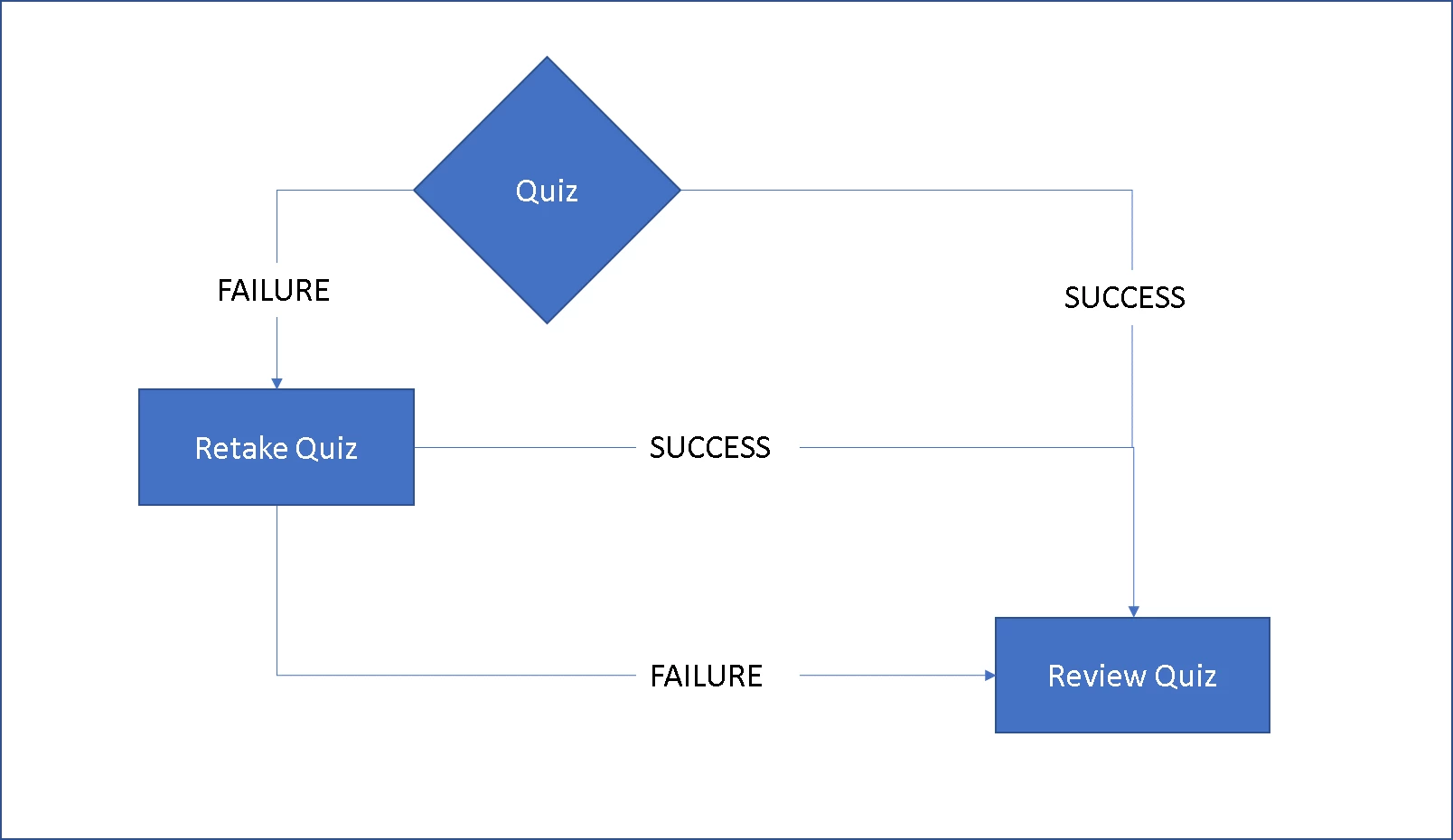 Logic behind the workflow is if a learner fails the quiz on first attempt he needs to retake. Again on retake, the user should be able to Review the quiz.