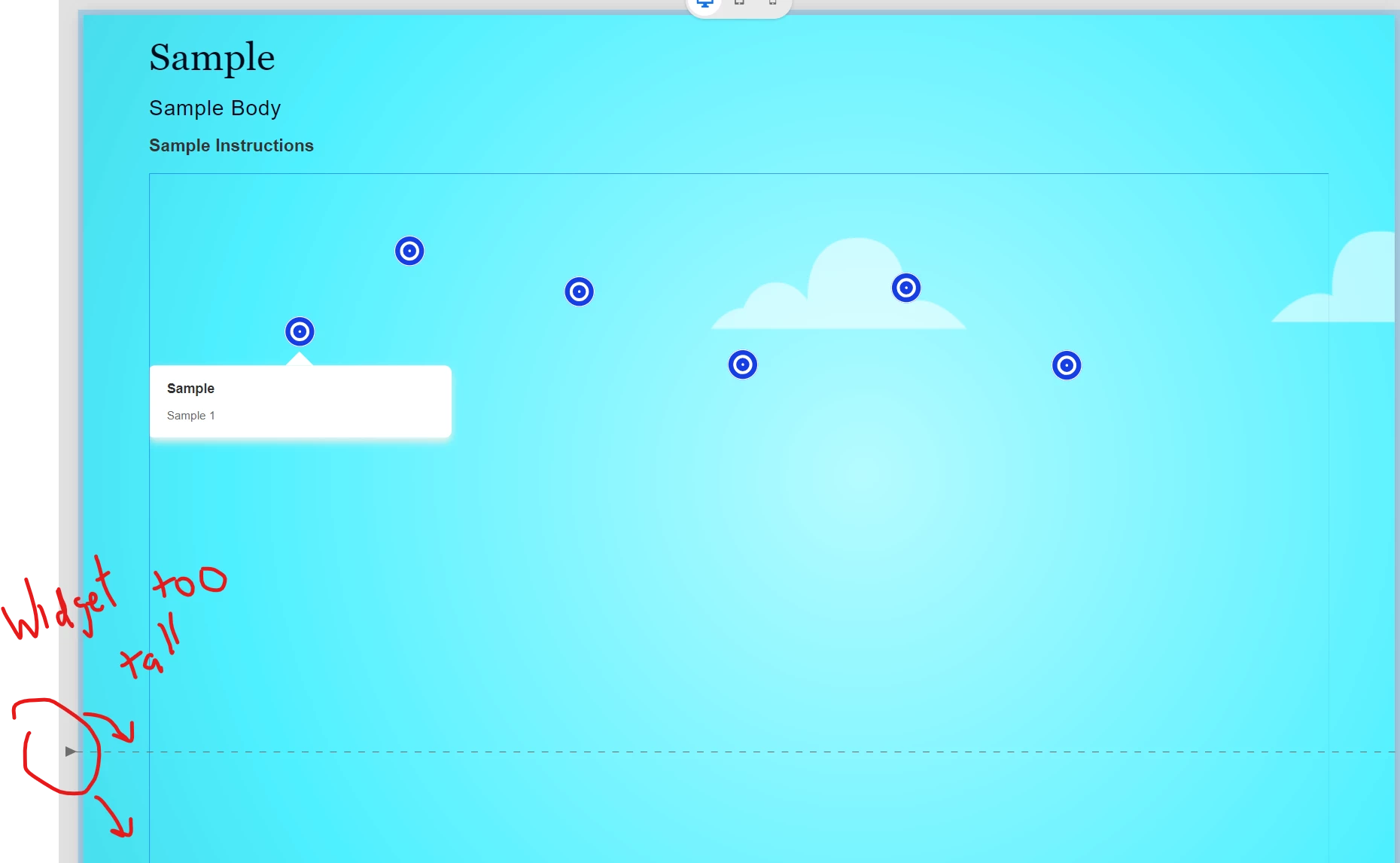 I added a hotspot widget to a blank slide and added 6 hotspots. I also added a title and instructions as well as changing the default image for is under the hotspots. Although I changed he padding of all possible elements using the design options (Hotspot Widge,t Title, Body, Instructions, Next and Previous), there seems to be a large space underneath the image and hotspots that is not being used. I tried several methods to remove the space since it makes the slide long without reason and creates a scroll in a browser. Unfornuately, every method I tried to remove the space using the padding features, has failed.