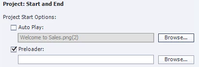 In the Start and End settings, with the AutoPlay button checked (and I tried unchecked) the Play button appears.